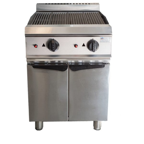 این دستگاه در دو سایز استاندارد ۶۰ سانتی متر ۲ شعله و ۹۰ سانتیمتر سه شعله تولید می شوند و مخصوص پخت غذاهای بدون روغن بوده که در طبخ غذا، مزه و طعمشان را بهبود می بخشد. از گریل ذغالی به منظور کباب کردن استیک، همبرگر و مرغ استفاده میشود. گریل ذغالی مبله آیسان به شکل یک اجاق گاز درست شده است که بدنه آن از جنس استیل ضد زنگ از نوع بگیر خش دار با ضخامت 1 میلی متر میباشد. این دستگاه از رویه دارای شبکه های شیار دار از جنس چدن، برنر جهت تامین حرارت، سینی تخلیه ضایعات و روغن، سیستم ترموکوپل، رگولاتور، دو شیر گازی استاندارد مرغوب و… تشکیل شده است.