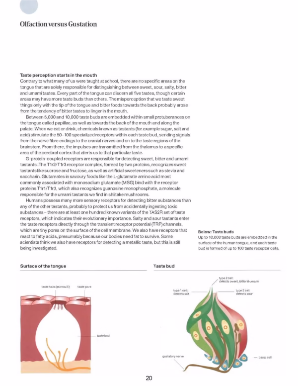 - حس بویایی: این بخش چگونگی بوییدن و درک عطرها توسط افراد، و همچنین ضرورت حس بویایی برای تجربهی غذا خوردن را توضیح میدهد.