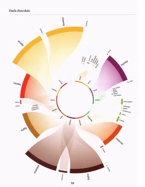 هنر و علم زوجسازی غذا 10,000 ترکیب طعم را در قالب چرخهای طعم و کلیدهای رنگی ارائه میدهد. سرآشپزها با مراجعه به یک مادهی اولیه، میتوانند 10 زوجسازی غذا و یک چرخ طعم که نتایج چشایی را نشان میدهد، پیدا کنند. برای مثال، لبوی پختهشده در صورت زوج شدن با قهوه، طعم خاک را کمتر میدهد و بیشتر شبیه به پنیر میشود و گلکلم پاشیده شده با پودر کاکائو میتواند بدقلقترین بچهها را به عاشقان سبزیجات تبدیل کند.