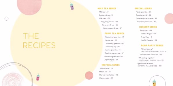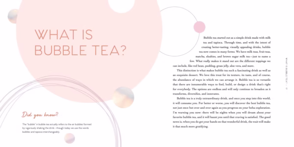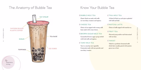 از چای شیر کلاسیک گرفته تا انواع میوه های عجیب و غریب، این کتاب طیف گسترده ای از دستور العمل ها را برای ارضای هوس های شما برای بوبا ارائه می دهد. وندی حتی شامل دستور العمل های خلاقانه ای است که مرزهای چای حبابدار را افزایش می دهد.