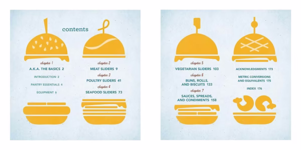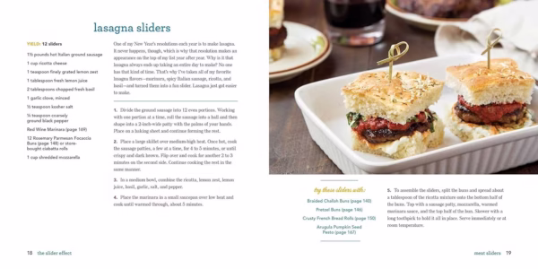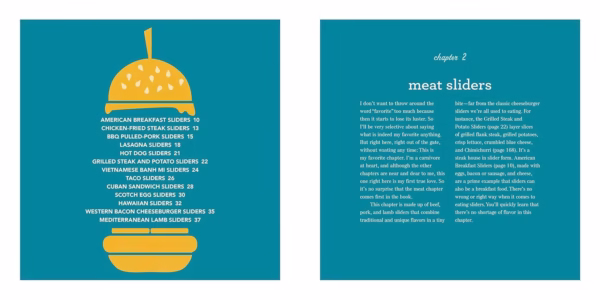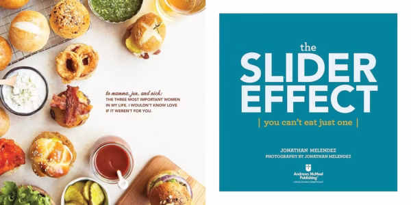 کتاب The Slider Effect: You Can’t Eat Only One! با نام فارسی کتاب آشپزی اسلایدر، توسط Jonathan Melendez دارای 10 فصل است که هر فصل بر روی نوع متفاوتی از اسلایدر، نان یا سس تمرکز دارد. در اینجا مروری کوتاه بر فصول است: