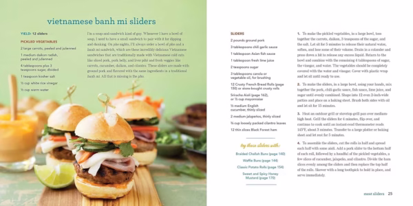 این فصل دارای 15 دستور العمل برای اسلایدر های ساخته شده با سبزیجات، غلات، لوبیا یا پنیر است. برخی از دستور العمل ها عبارتند از اسلایدر چغندر برشته و پنیر بز، اسلایدر پارمزان بادمجان و اسلایدر لوبیا سیاه و ذرت.